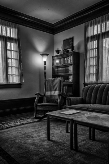 Black and white photographs of locations described in the novel and the coda start each chapter. These include interior shots of Sam Spade’s (and Dashiell Hammett’s) apartment at 891 Post Street.