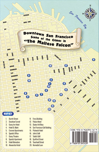 The dust jacket incorporates a “mapback” showing crime-scene locations from both Hammett’s novel and the stories from the coda.